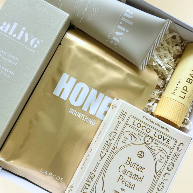 This gift box includes soothing lip balm, a hydrating face mask, vegan chocolate, and soothing hand cream for a luxurious, indulgent experience. Perfect for unwinding or gifting.